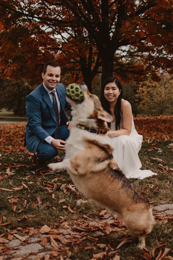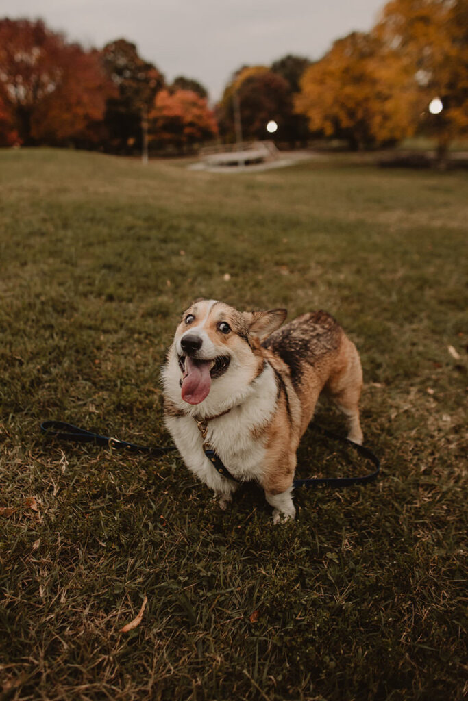 Of course, we couldn’t forget about their corgi, Del Piero, who joined us for our photoshoot at location number two, Patterson Park. Although he was mostly obsessed with his toy and didn’t seem to care much about the stunning autumn colors, it didn’t take him long to win my heart and he very much stole the show for a little while.