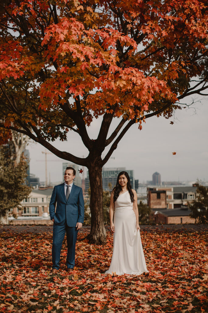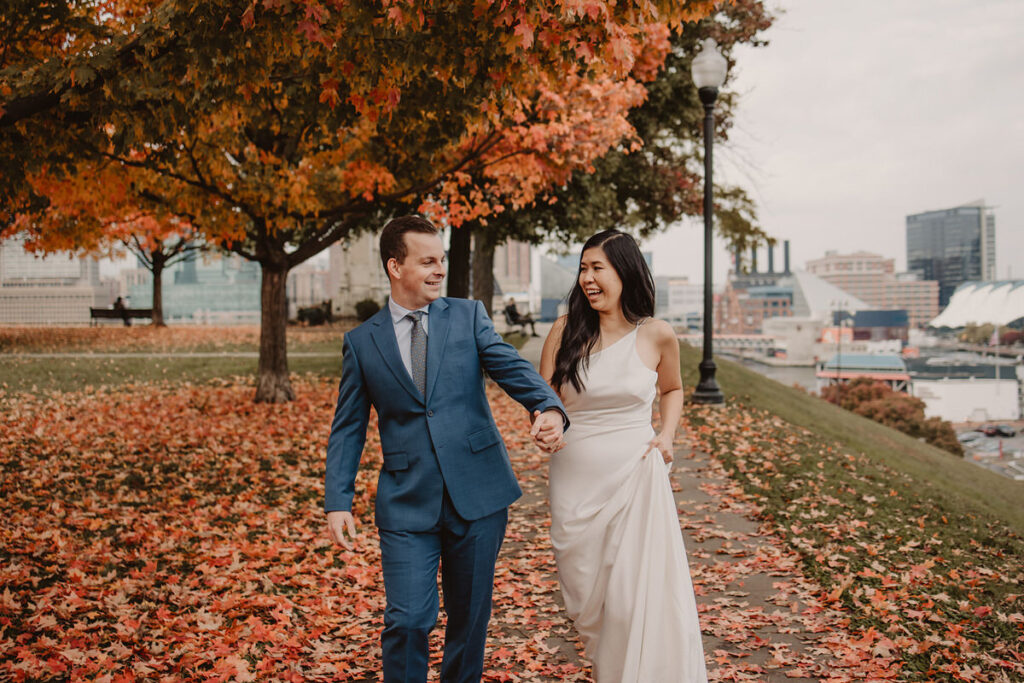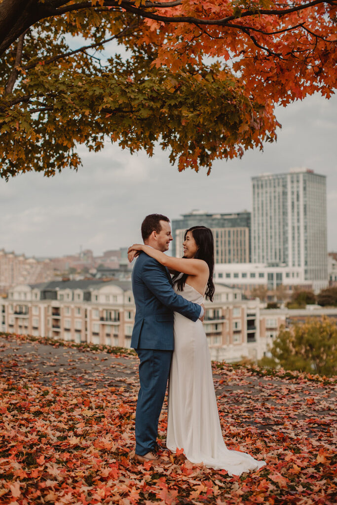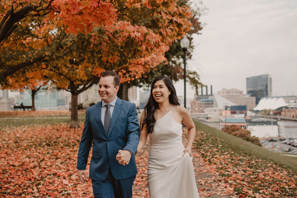 We met on a beautiful fall day in Federal Hill Park, surrounded by colorful leaves and breathtaking views. The light was definitely working in our favor!