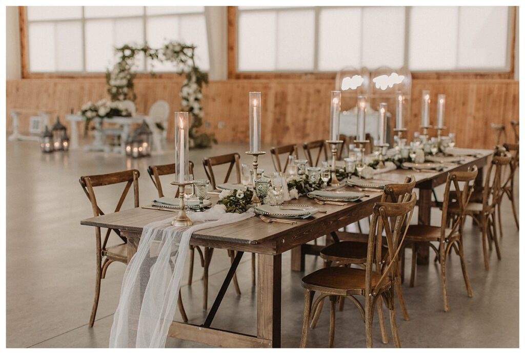 But if you want a little more weather reliability, the indoor event center is a gorgeous space. There’s a massive and modern barn interior for ceremonies and receptions alike, with chandeliers and walls of beautiful glass windows.