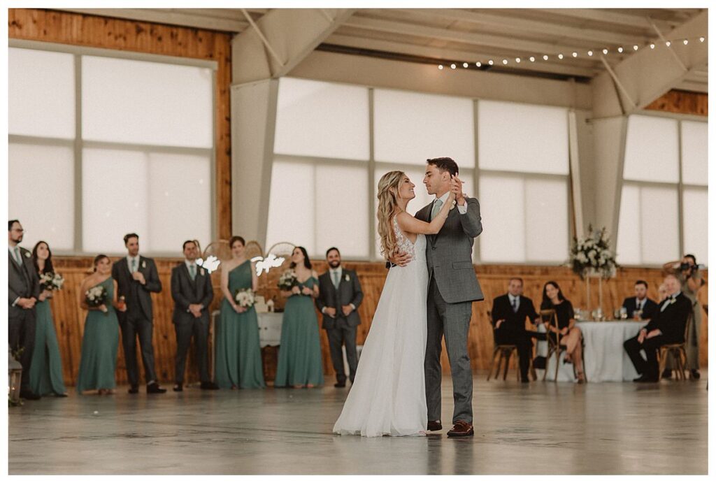 With classic white and green florals, beautiful sage bridesmaids’ dresses, and dashing gray for the groomsmen, the whole day was as classy as can be.