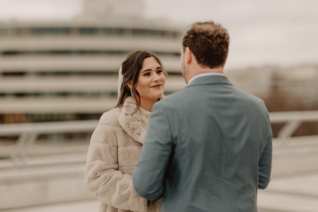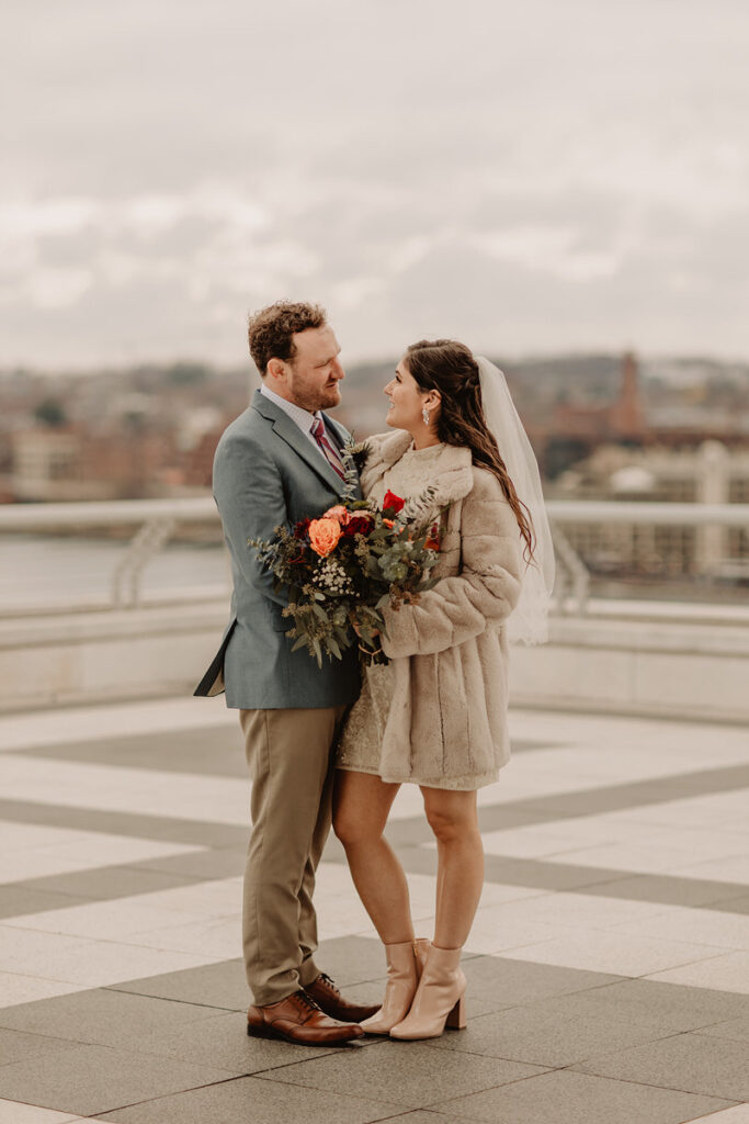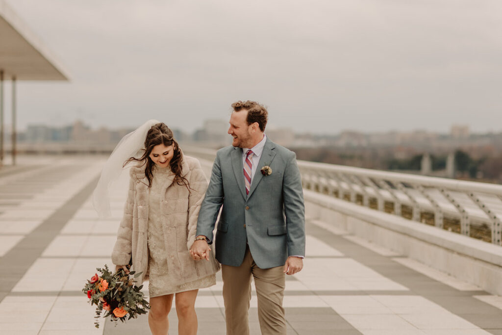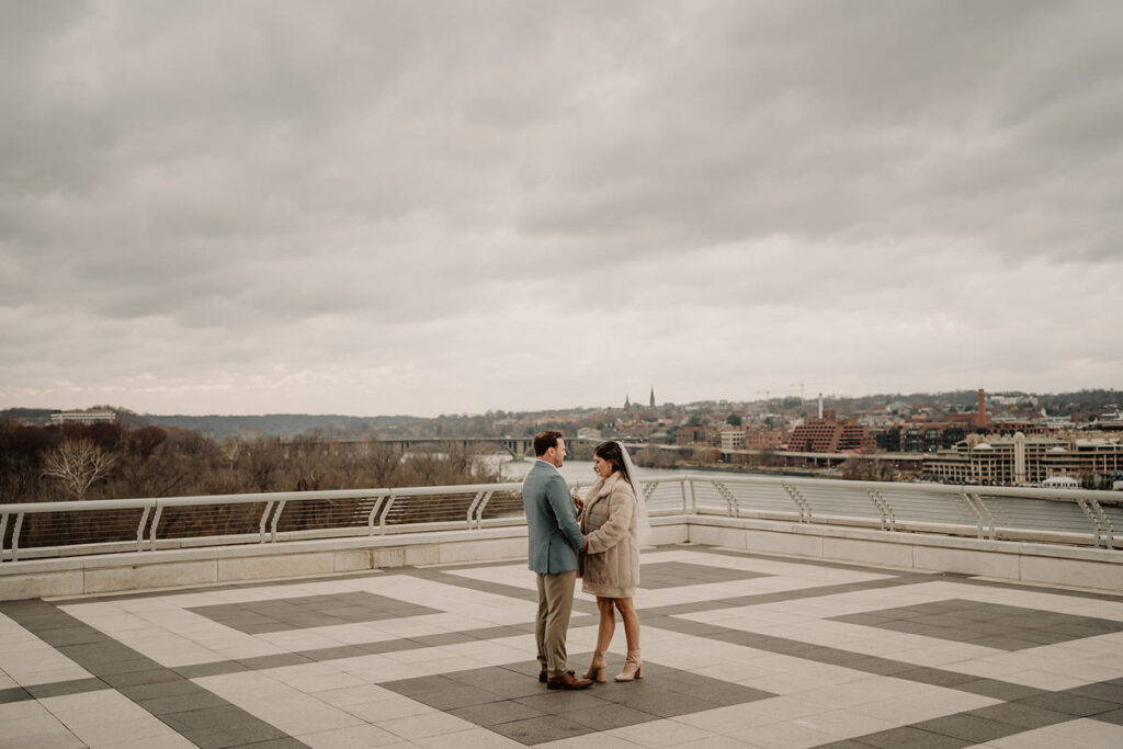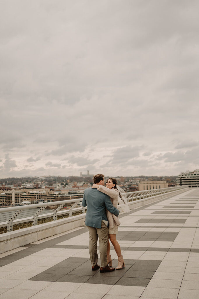 We met on the rooftop of the Kennedy Center where they officiated their own wedding ceremony by reading their own vows and exchanging rings. Just the two of them (plus me, the paparazzi of course), and some impressive views as a backdrop.