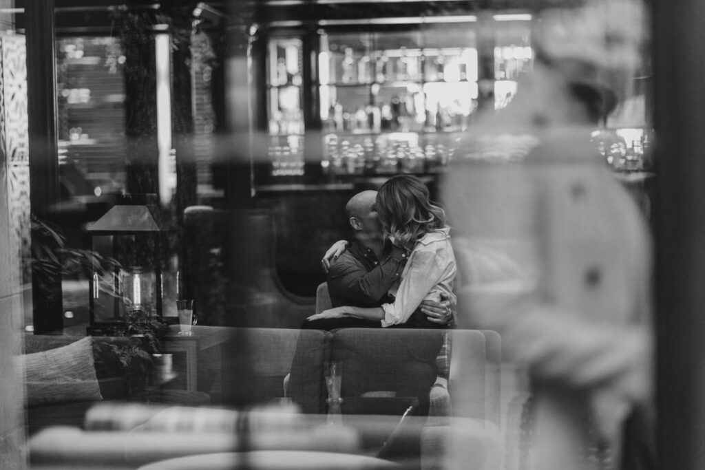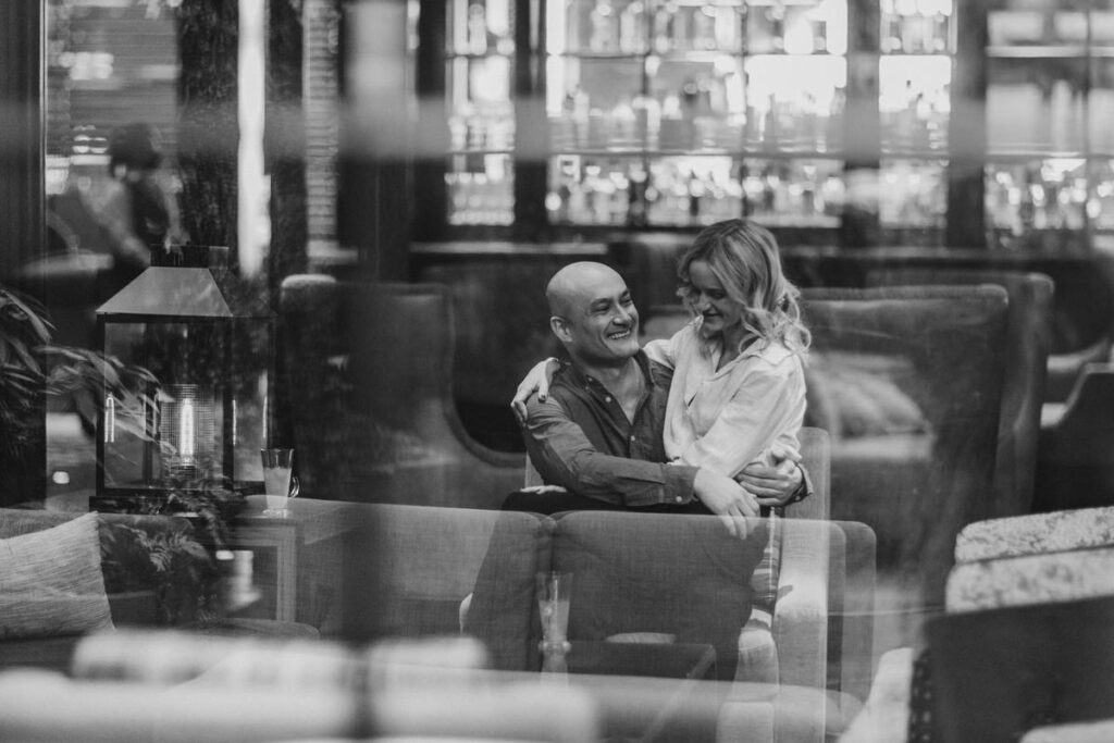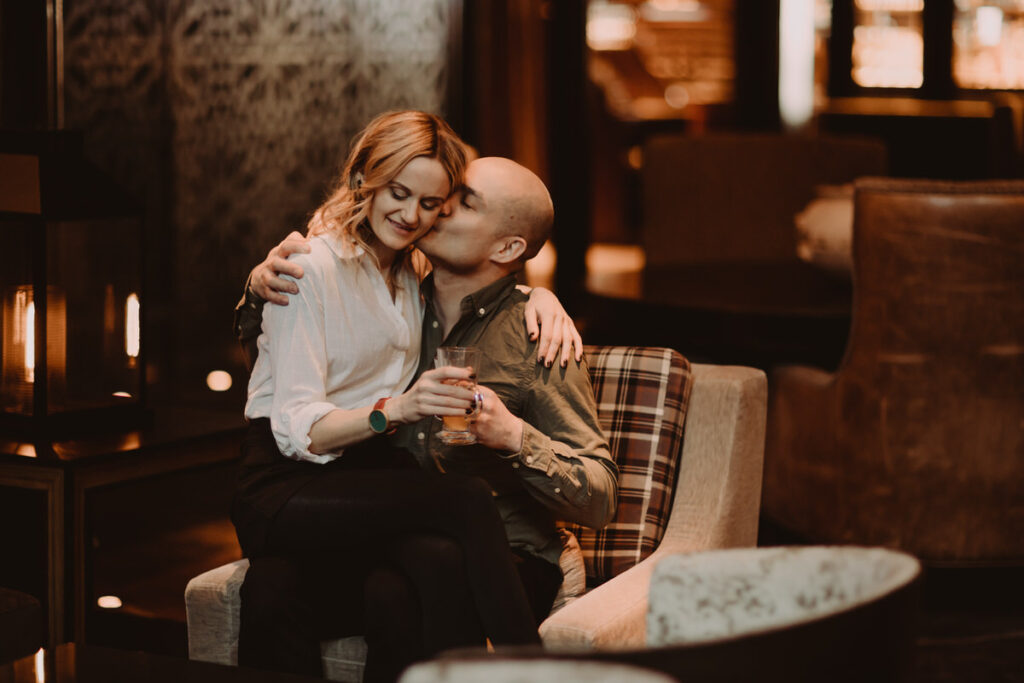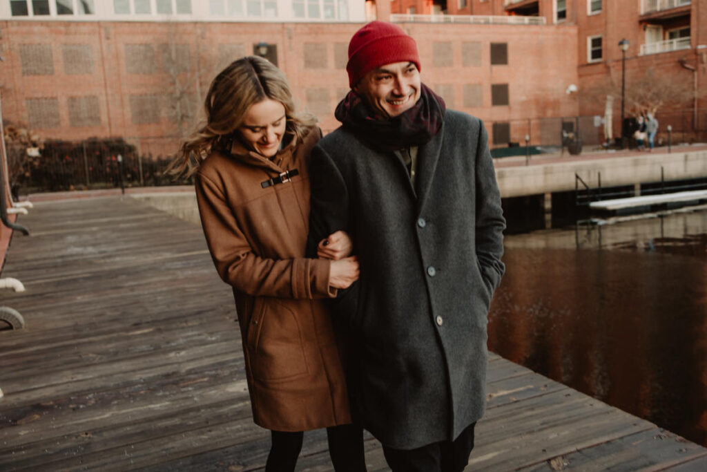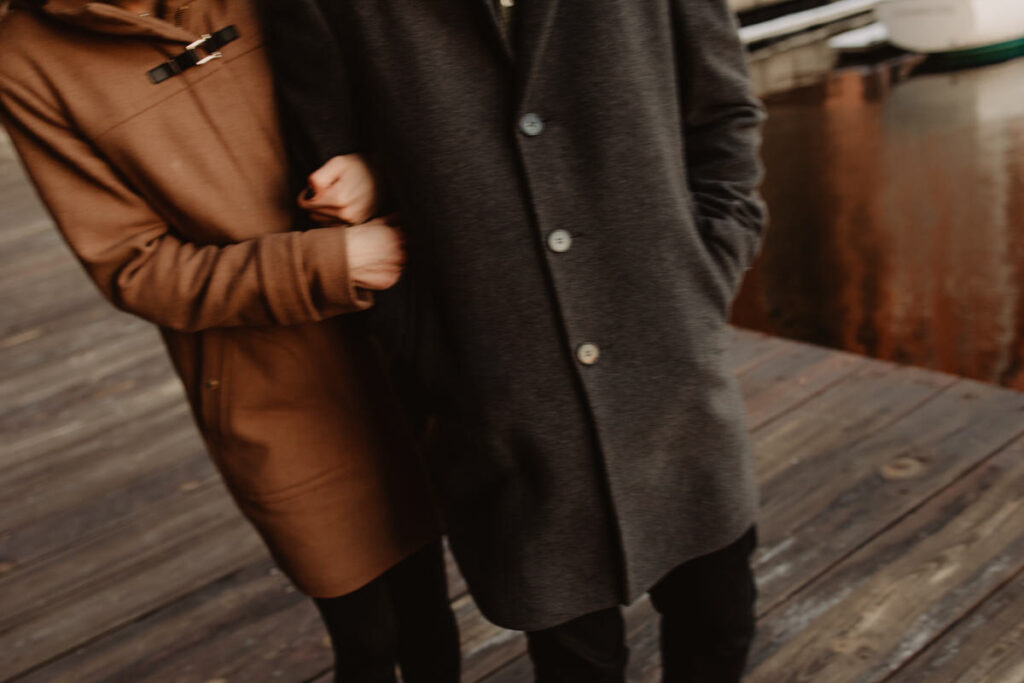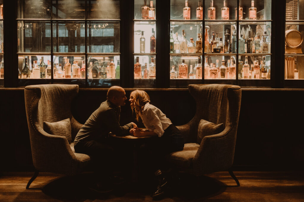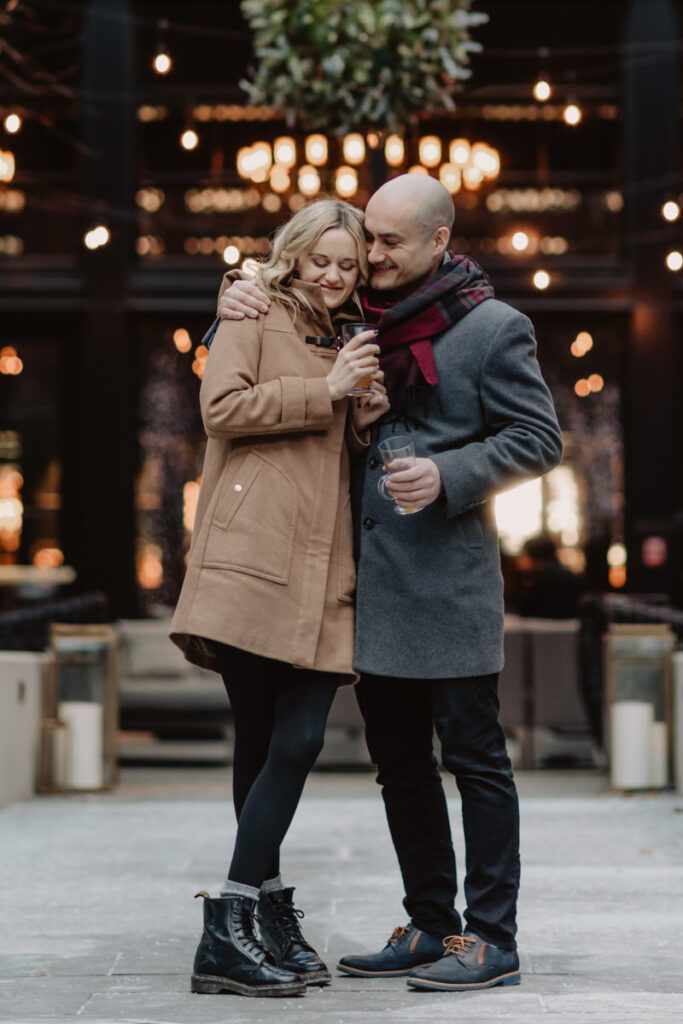 We met in Fells Point in front of the Sagamore Pendry, and decided to hop inside for a minute because we were already freezing before the session even started. We were able to get some cozy moody indoor shots and then some fun, romantic photos in the Sagamore Pendry courtyard. Once we warmed up we decided to have puppy Roux join the party, walked around the streets of Fells point and finished our session with water views and a wonderful wintery golden and blue hour.