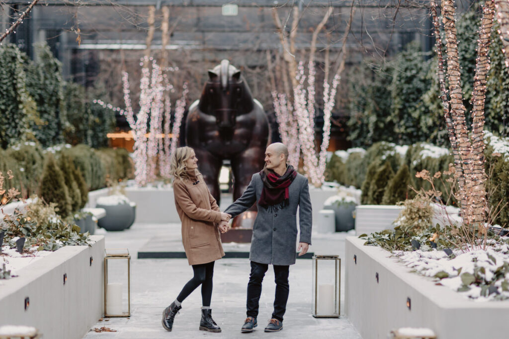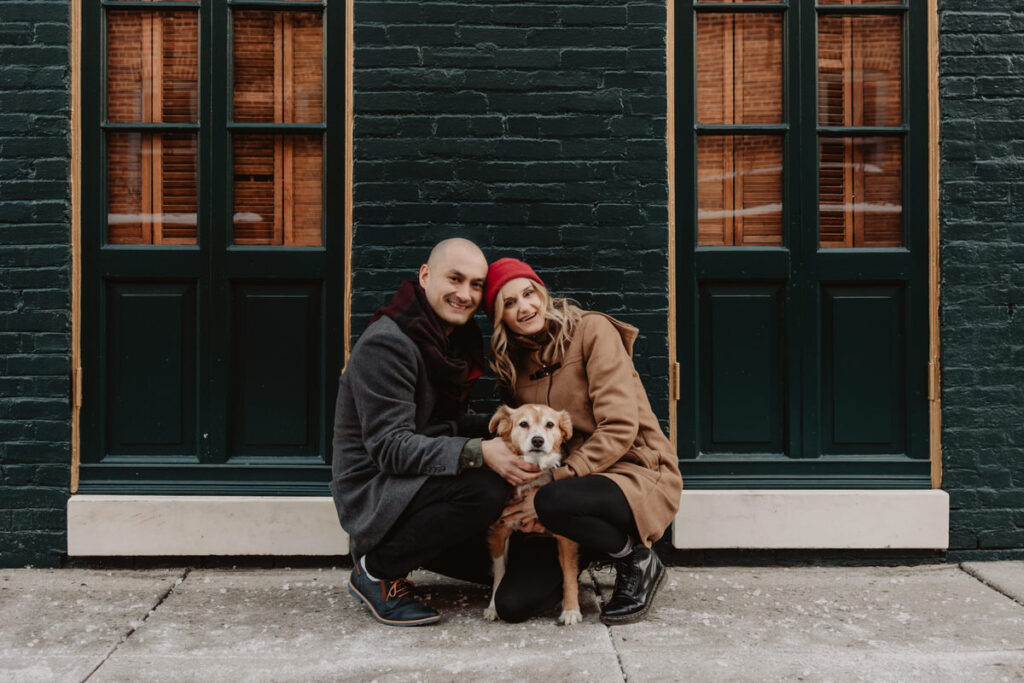 Rhea and Patrick’s engagement session fell on the coldest day of the year, so we improvised. We spontaneously found an indoor location, got some hot drinks to warm up, and moved back outside just in time for sunset. Their four legged companion Roux joined us for a few shots and we were able to get so much variety in just one session.