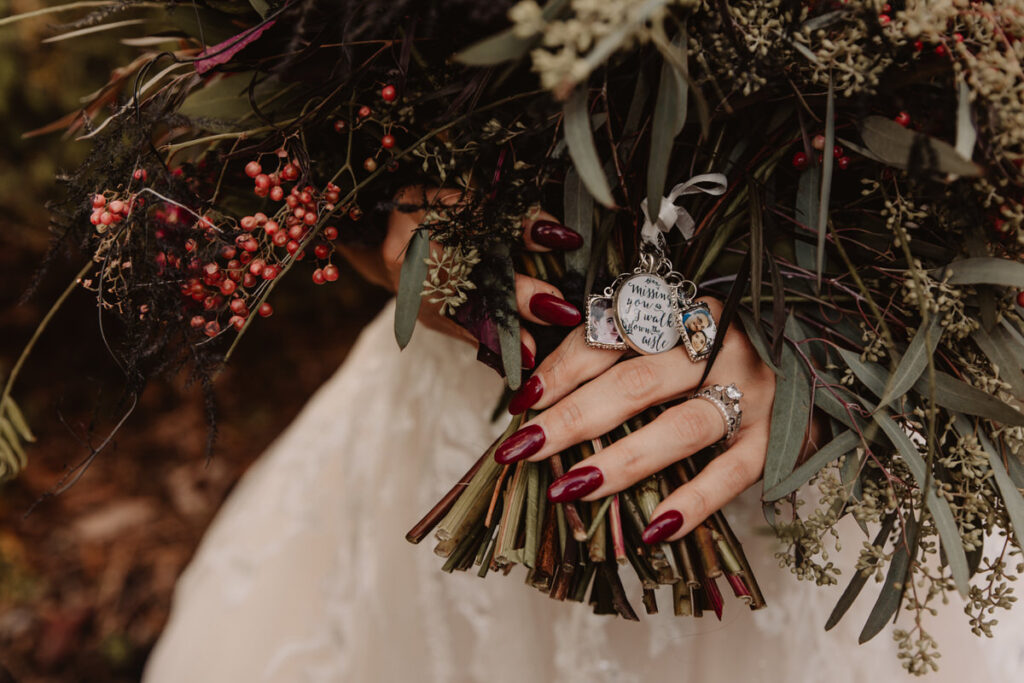 I especially love when couples add their own meaningful details, Paige added pendants to her bouquet in remembrance of family members who couldn’t be there, to still hold them close on her wedding day.