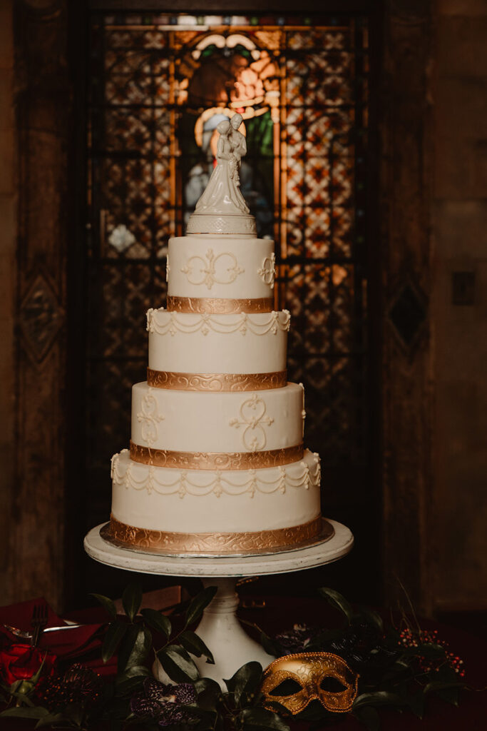 After dinner and the couples first dance outdoors, the party was moved inside. My personal highlight: The cake! Patisserie Poupon outdid themselves with this white and gold four tier piece of art. And not only was it beautiful to look at, it was tasty as well!