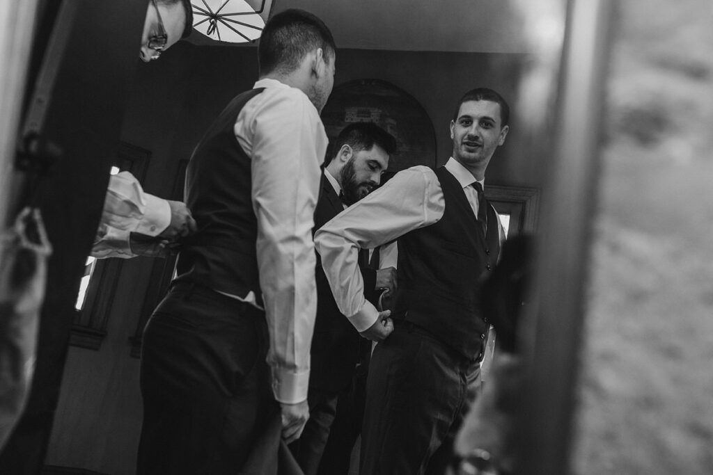 Paige’s Princess dress was absolutely breathtaking. Once of the first things I do at almost every wedding is taking a photo of the dress. Having met the couples at consultations. and often engagement sessions beforehand, I’m always so curious what kind of the dress the bride has chosen for herself. I was so excited when I got to unwrap this gorgeous princess dress! Cody’s classy blue three piece suit from complemented her dress perfectly.
